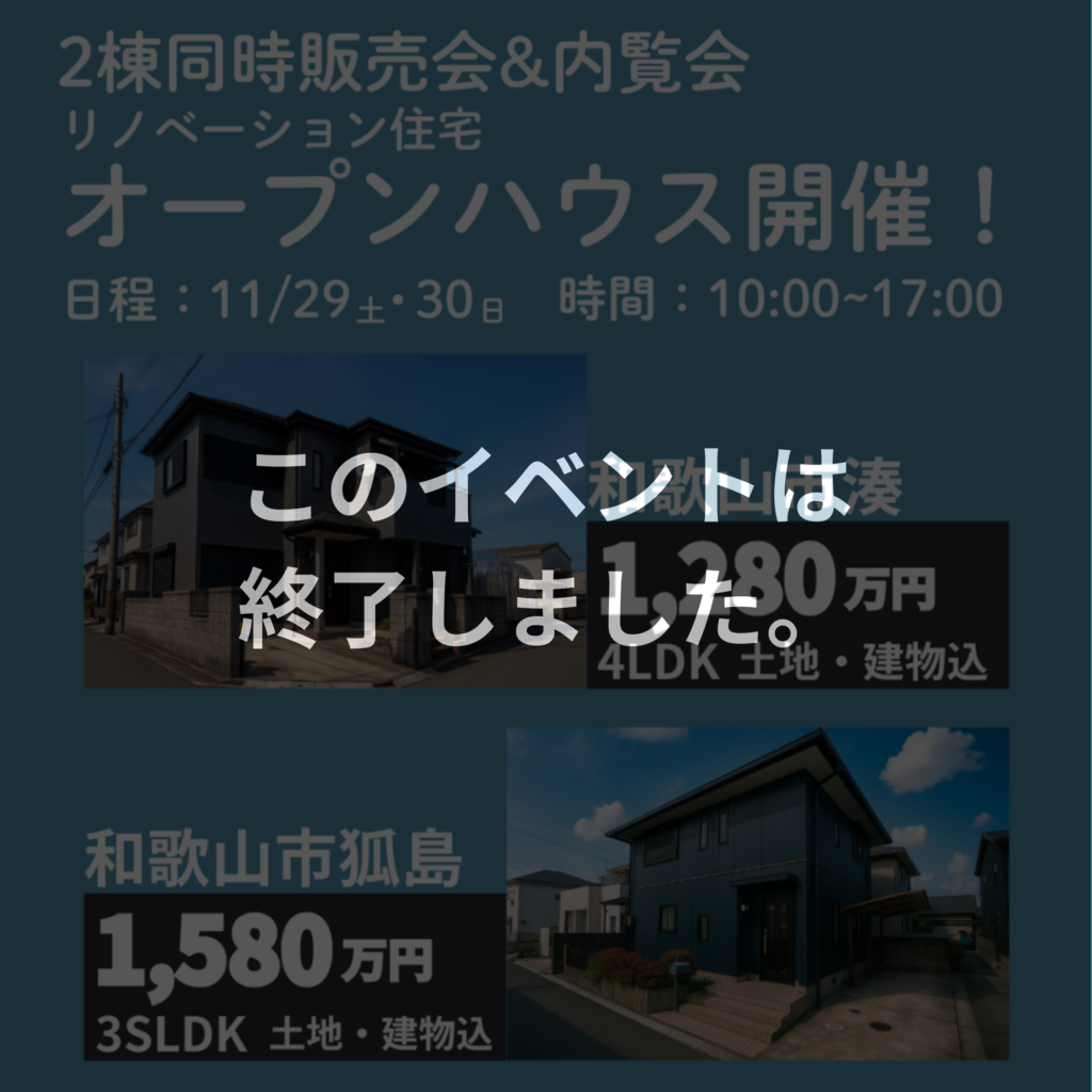 ≪このイベントは終了しました≫【2棟同時販売会&内覧会】 11/29(土)・30(日) リノベーション住宅オープンハウスin和歌山市湊・狐島 開催!!